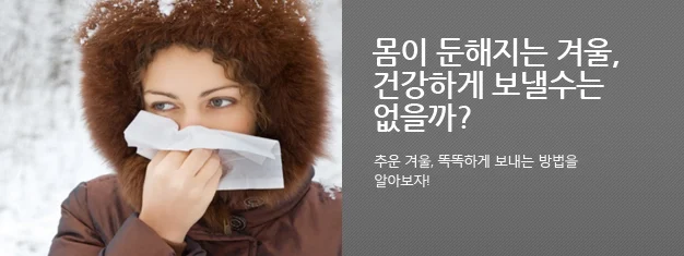 기온이 점점 떨어져 옷속까지 파고드는 추위때문에 바깥에 나가는 것이 꺼려지고 따뜻한 실내에만 있고 싶은 겨울이 다가왔습니다. 이렇게 몸을 움츠리게 되는 겨울엔 나도 모르게 몸에 적신호가 올 수 있습니다. 추운 날씨와 건조한 공기는 신체 면역력을 약화시키므로 겨울철 단골 손님인 감기와 독감에 걸리기 쉽기 때문입니다. 그렇다면 건강한 겨울을 날 수 있는 생활 습관들에는 무엇이 있을까요?